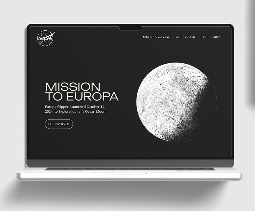 I designed and developed an event website and promotional poster to generate excitement for NASA's 2024 Europa Clipper mission to Jupiter’s moon. I wanted to avoid the typical space clichés and opted for a minimalist, modern approach instead. For the poster, my goal was to tell the story of the Europa Clipper spacecraft and its mission.